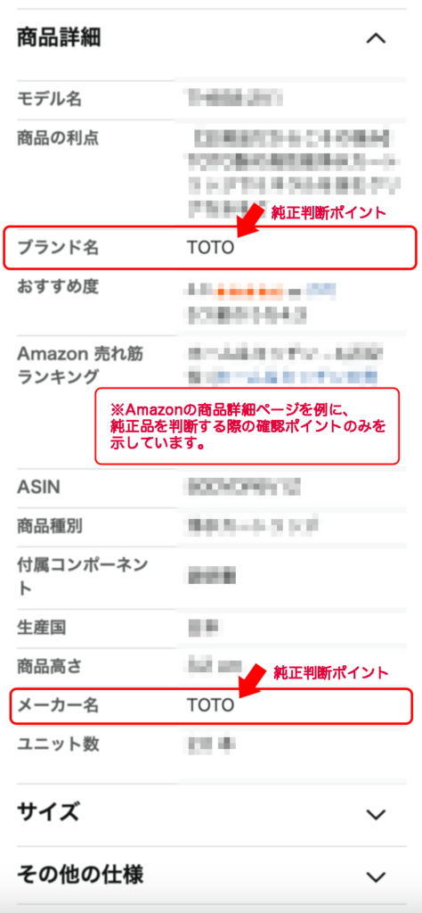 ブランド名とメーカー名がTOTOであるかどうかです。