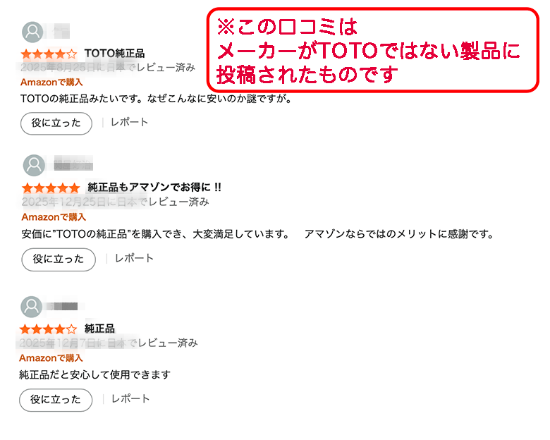 TOTO以外のブランド名で販売されているものは、純正品ではありません。